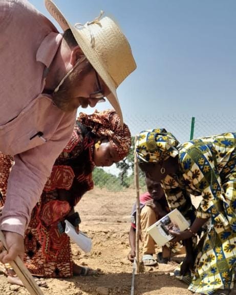 A dinâmica acaba ficando interessante, mas também trabalhosa. Nós falamos em português, o intérprete traduz para o francês, e, nas vilas e aldeias, muitas pessoas não falam francês, pois nunca frequentaram a escola. Então, um intérprete local traduz do francês para o Bambará. Nesse processo, uma fala de dez minutos facilmente se transforma em trinta. Essa é uma das dificuldades que enfrentamos. Por isso, optamos por fazer muitas demonstrações práticas, o que reduz o tempo de fala e facilita o entendimento. Dessa forma, conseguimos avançar mais em menos tempo e transmitir as ideias de maneira mais clara.
